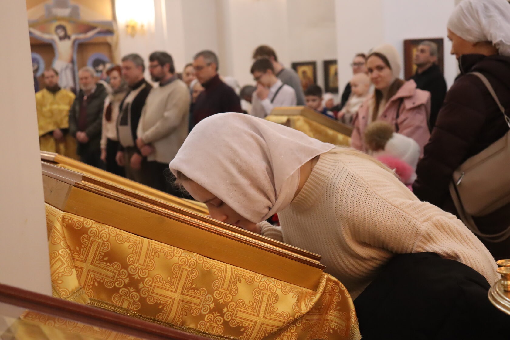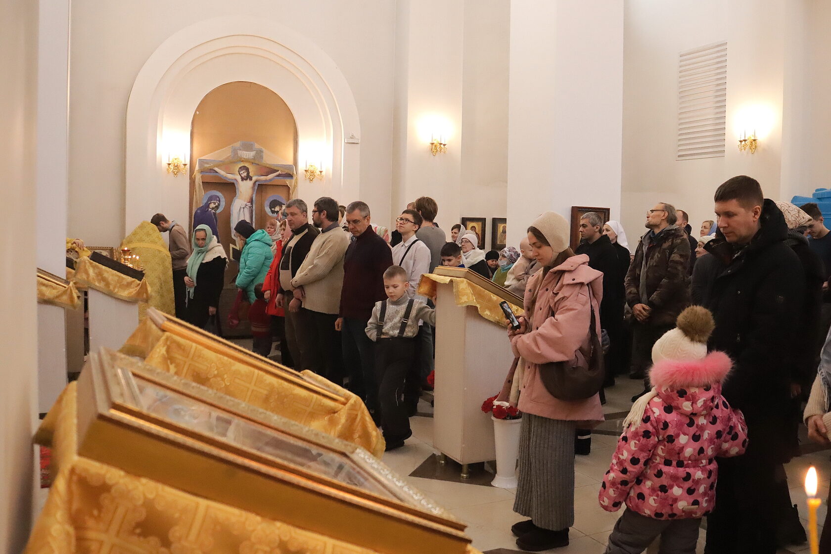 Многие прихожане, в том числе с детьми, причастились Святых Христовых Тайн.