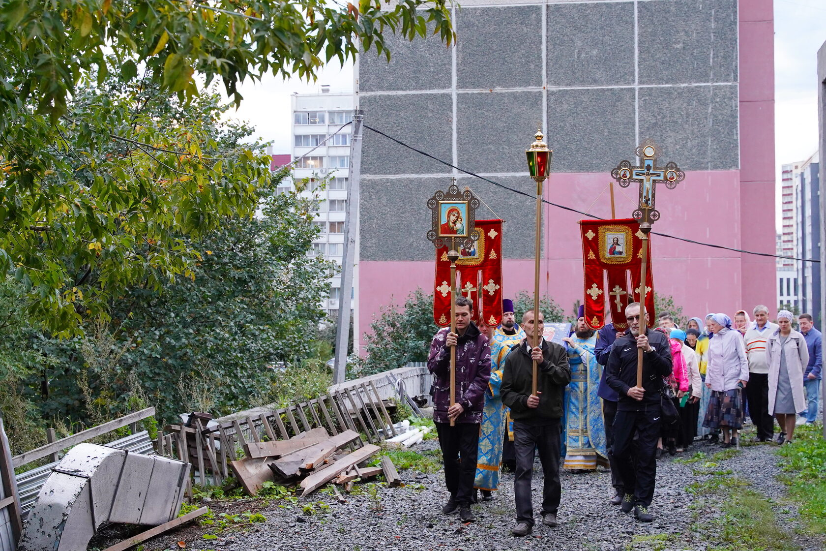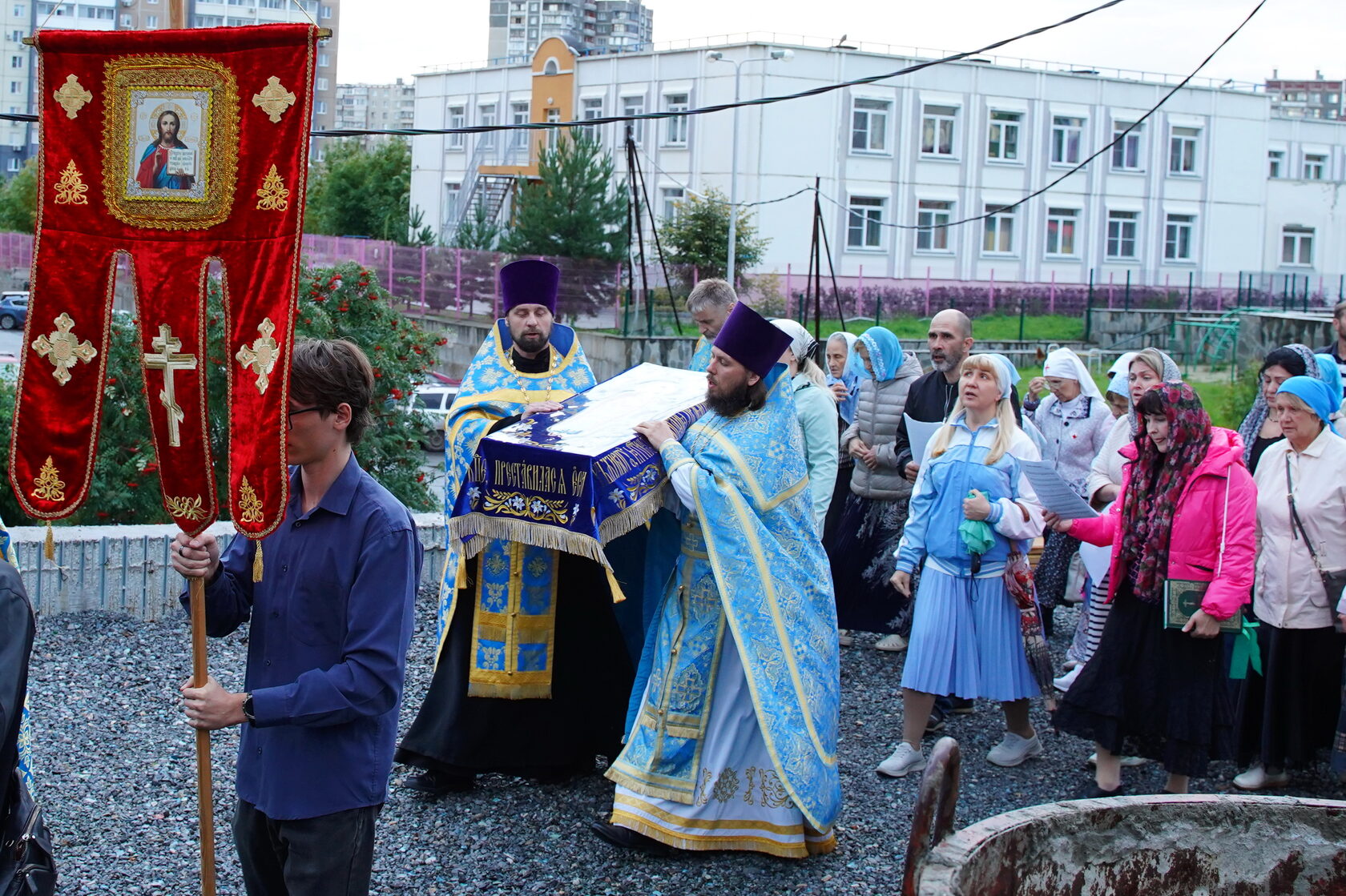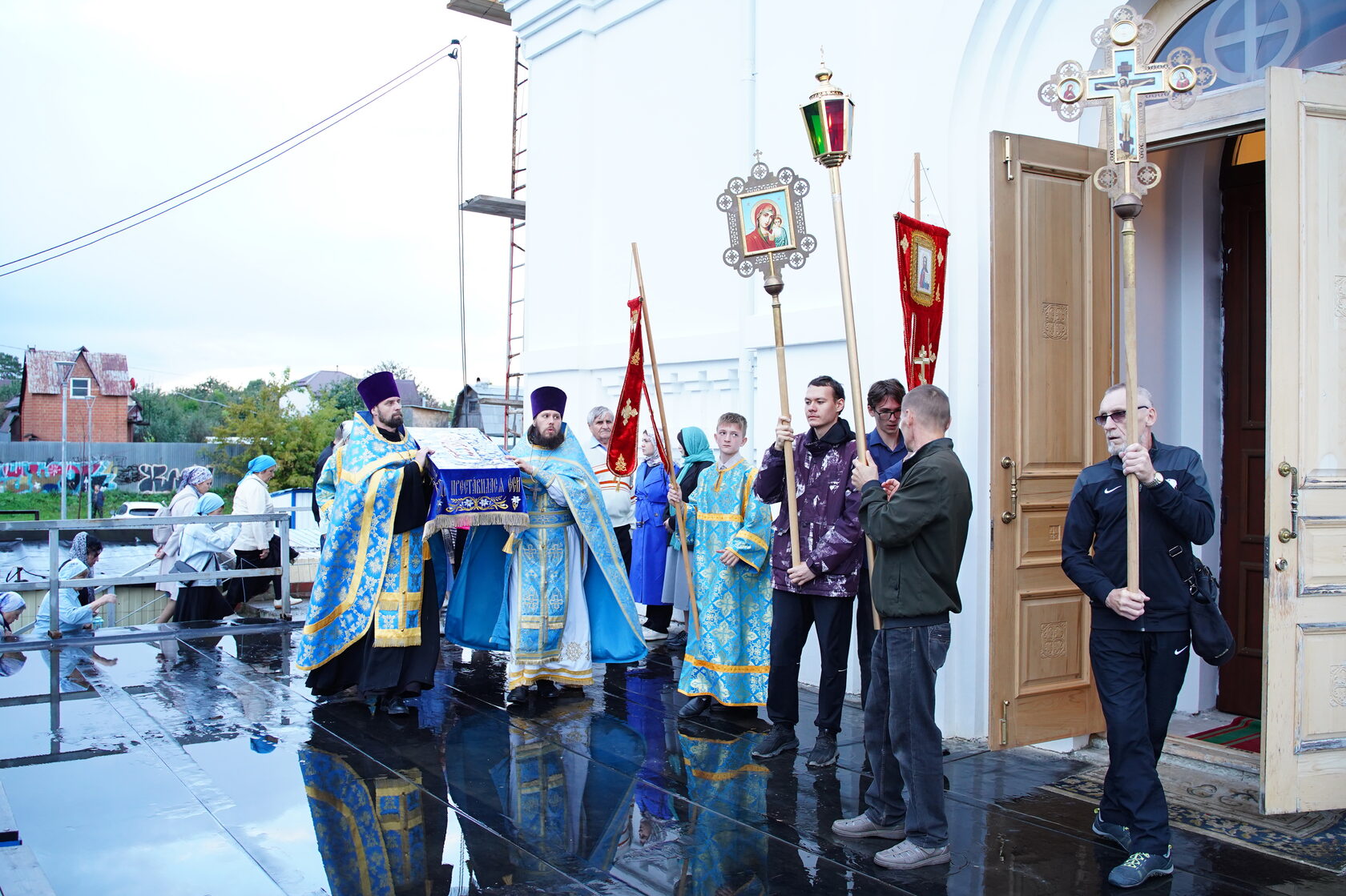 Особое место в Богослужении занял Крестный ход с Плащаницей Пречистой Девы вокруг храма, объединив верующих в едином духовном порыве.