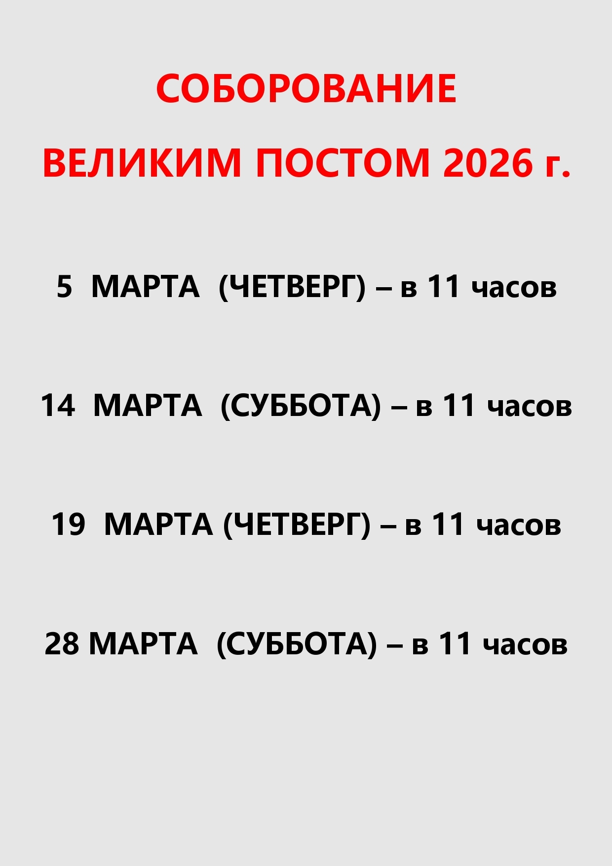 Соборование Великим постом в нашем храме будет проводиться: