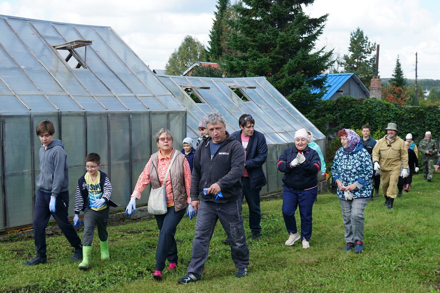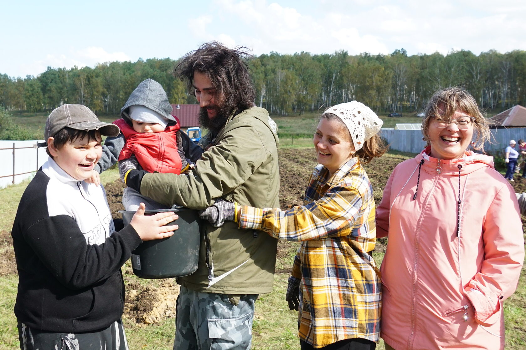 Взрослые и дети дружно взялись за дело, хотя юные помощники иногда отвлекались, чтобы поиграть на полянке.