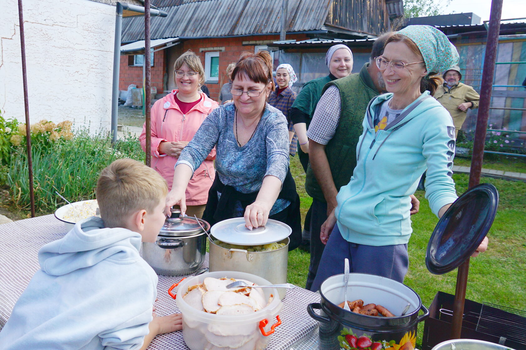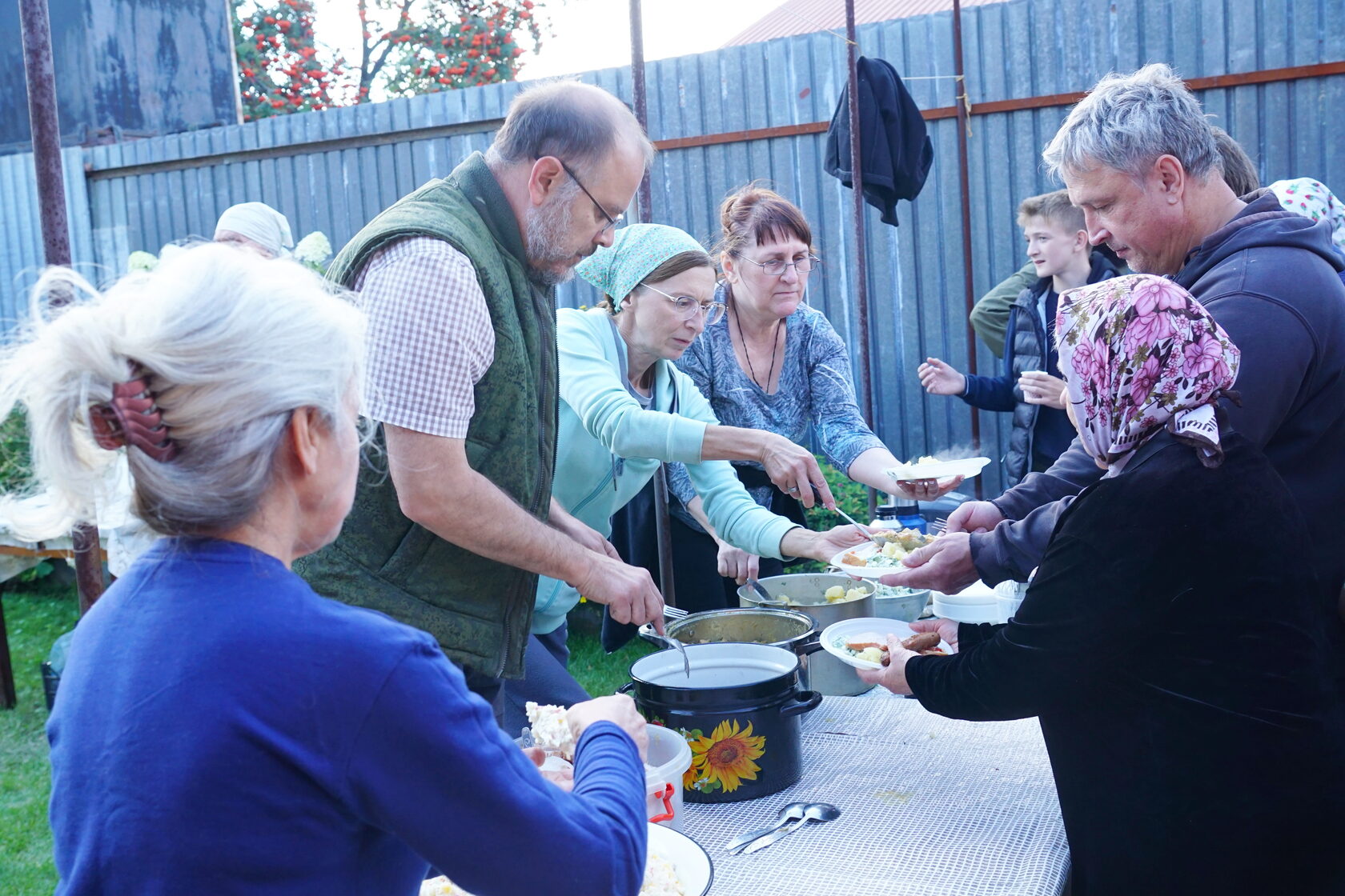 После сбора картошки всех ждала вкусная трапеза со всевозможными угощениями и сладкими сочными арбузами на десерт.