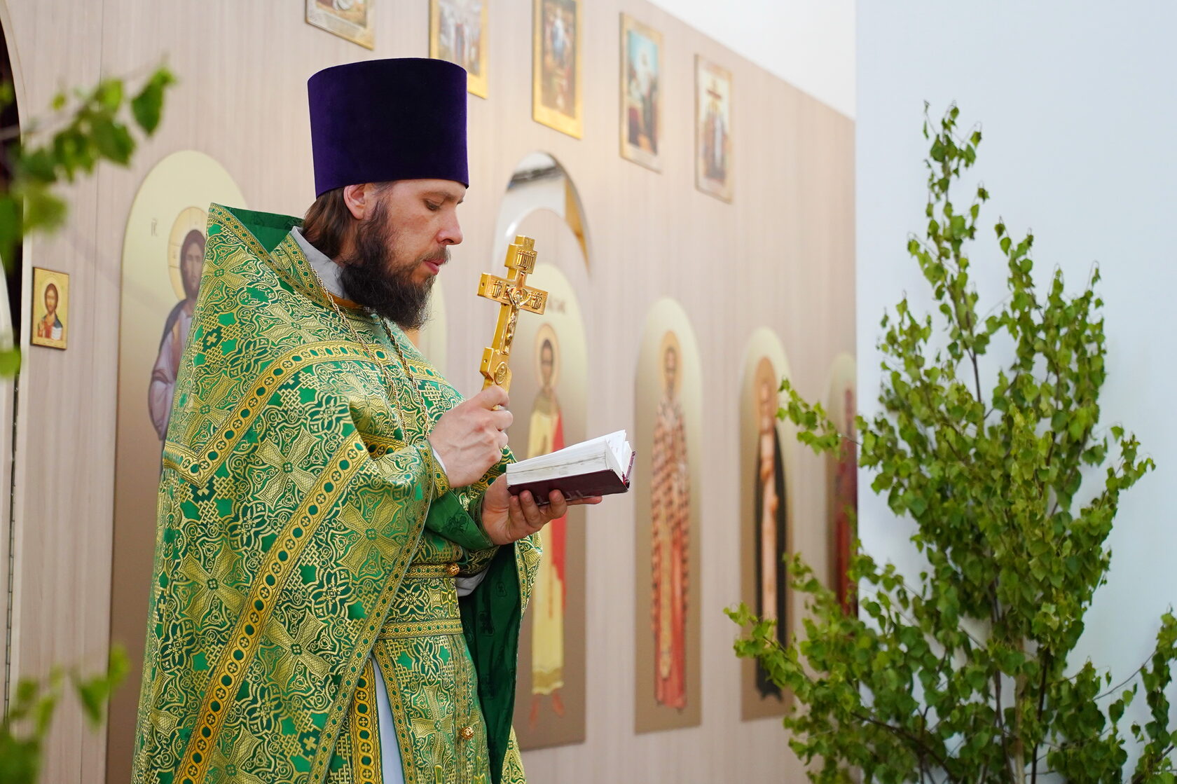 Священнослужители облачились в одежды зеленого цвета, как символ обновления жизни.
