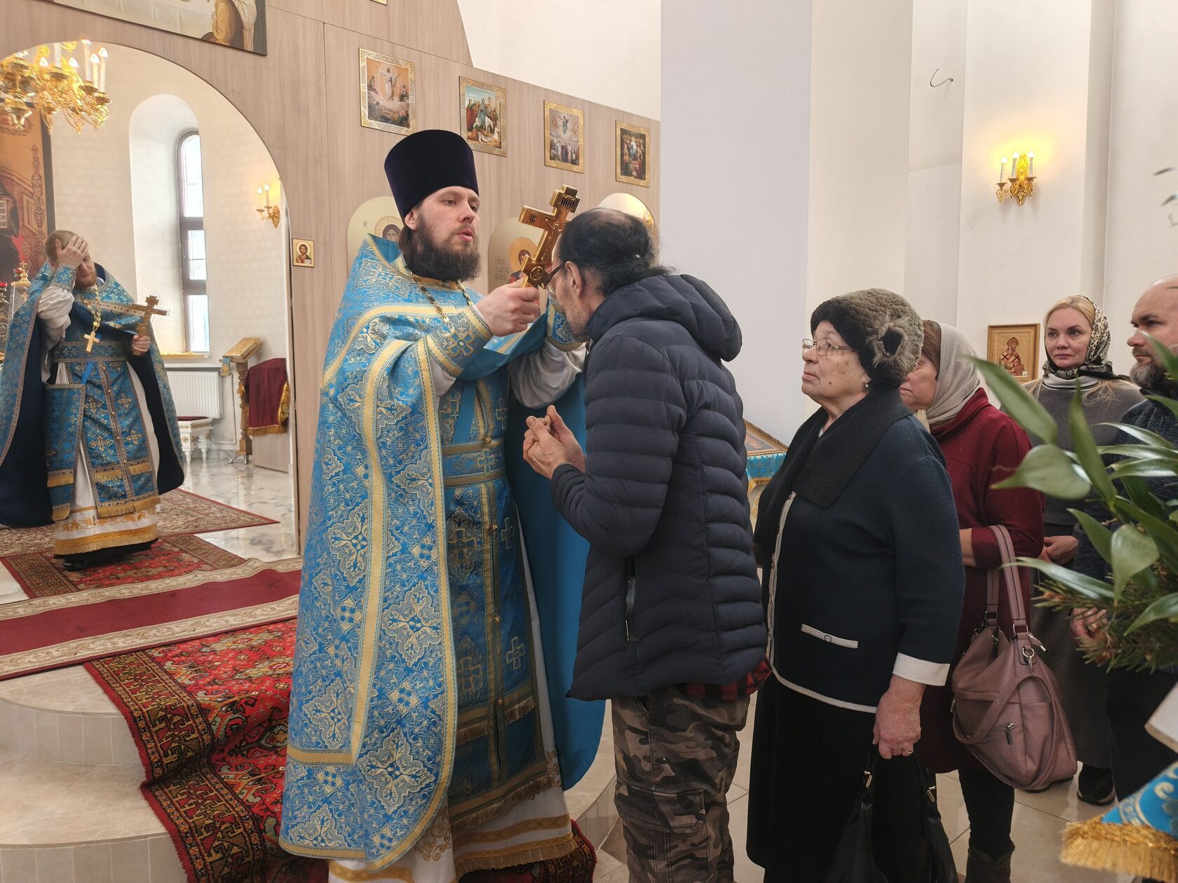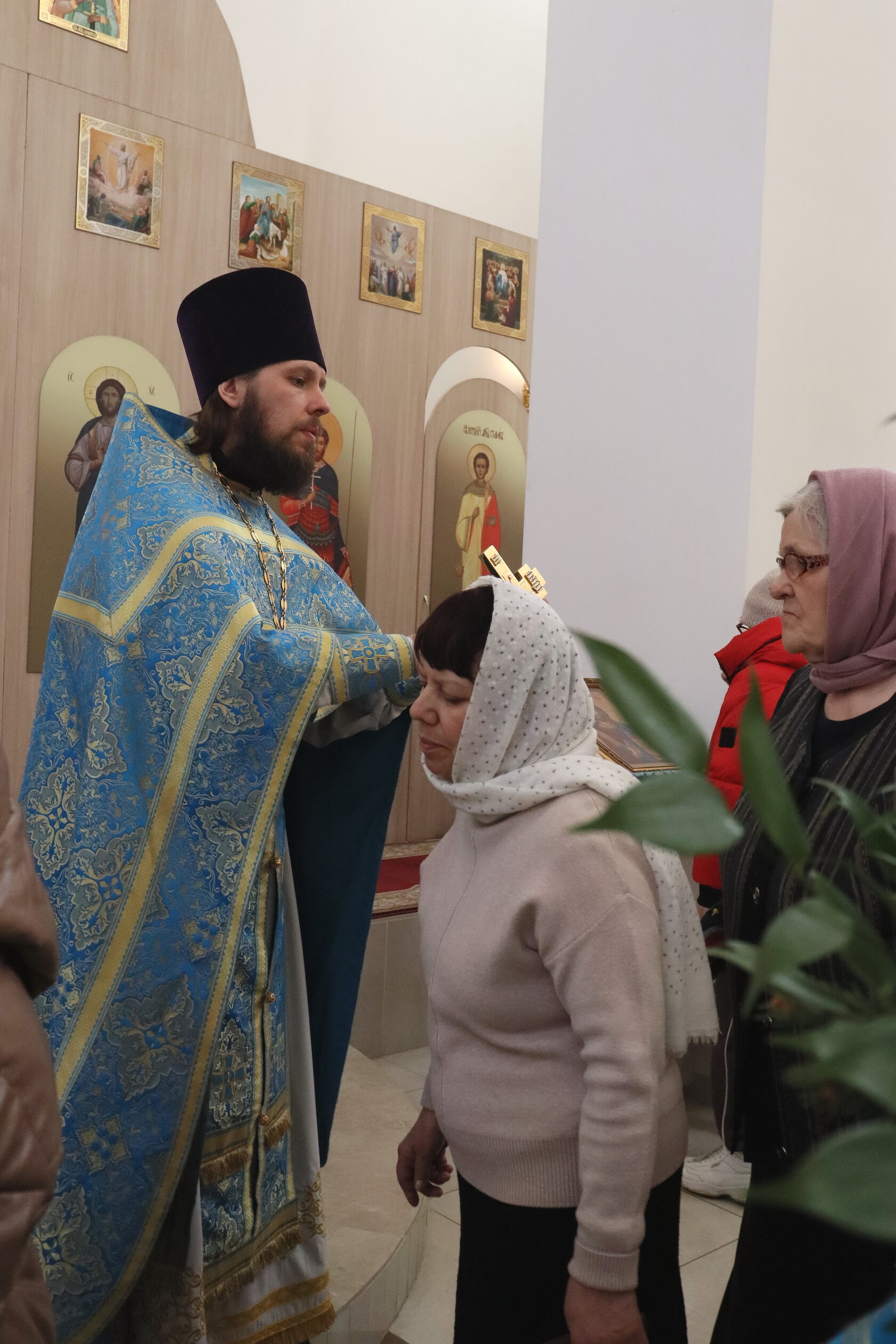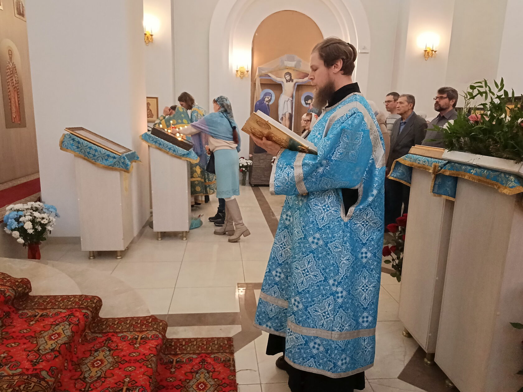 Почти все верующие причастились Святых Христовых Тайн. Священники облачились в праздничные голубые ризы, а Божественную Литургию возглавил настоятель храма иерей Павел Курбатов.