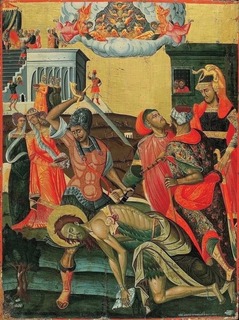 О мученической кончине Иоанна Крестителя нам повесвуют Евангелисты Матфей и Марк.