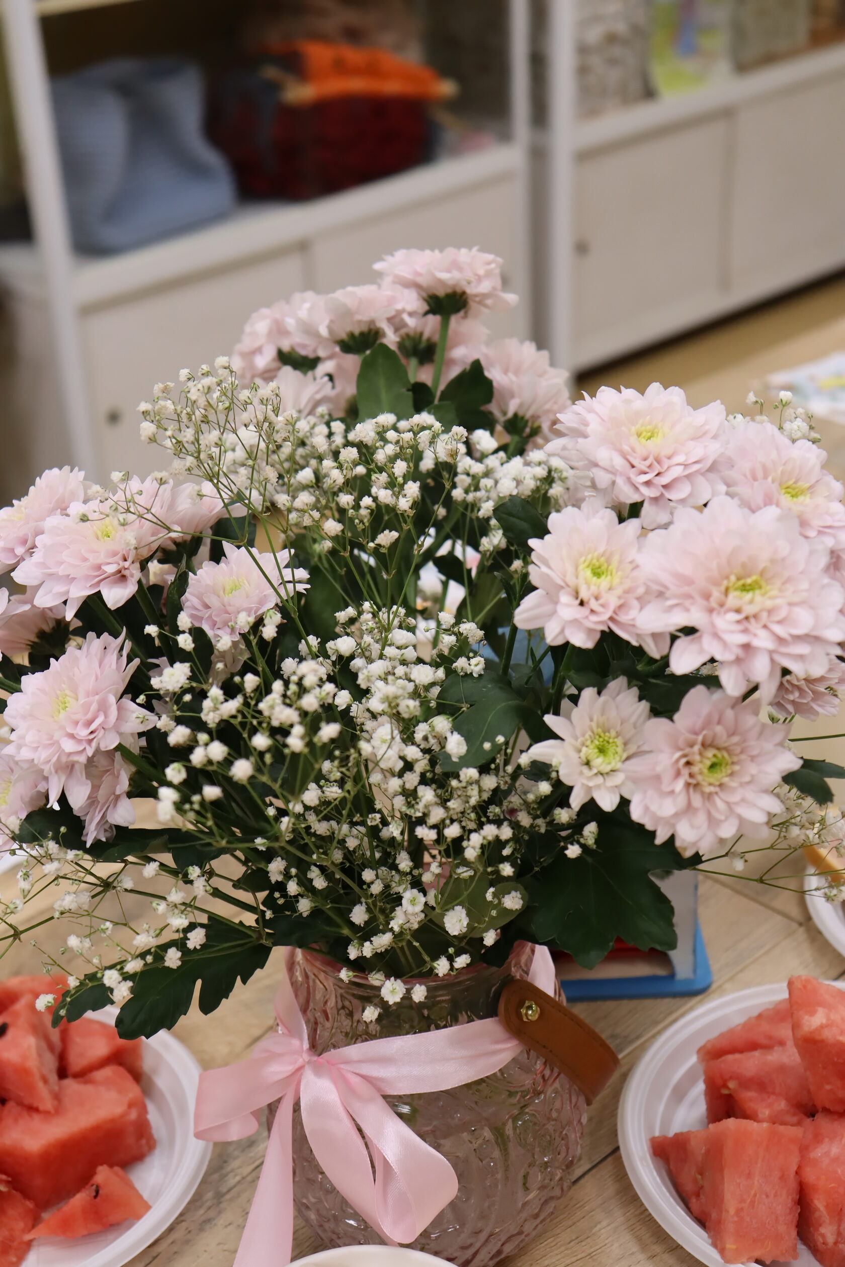 После теплых слов все гости были приглашены к столу, где их ждали чаепитие, сочный арбуз и сладкий виноград.